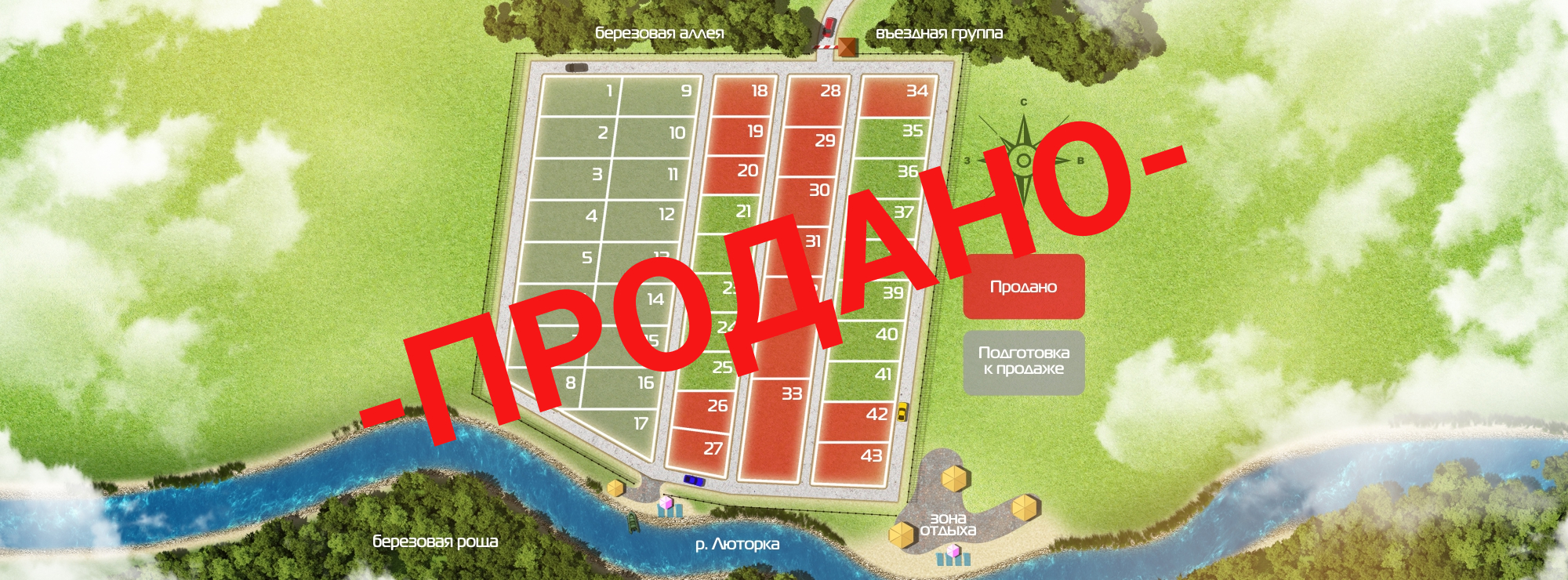 5. Территория участков поселка расположена вдоль реки Люторка и естественным образом ограждается со всех сторон Березовыми рощами.