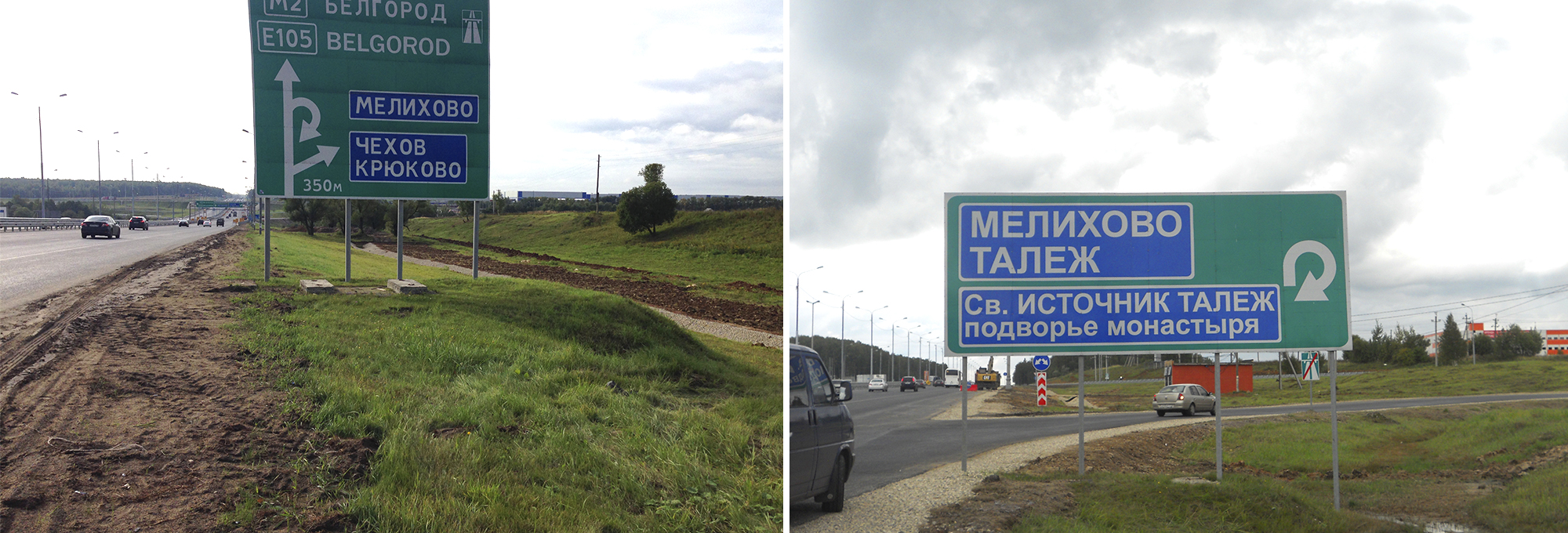 • под мостом повернуть на право, указатель "МЕЛИХОВО";
